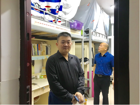 开学初的此次检查,一是了解学生生活学习状态,二是了解寝室内的设备是否需要维修。走访过程中,肖军凡书记与同学们进行了亲切交流,关心同学们的生活状况,发现寝室淋浴头损坏后,立即为同学们去后勤部报修。