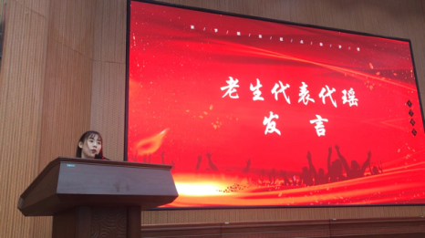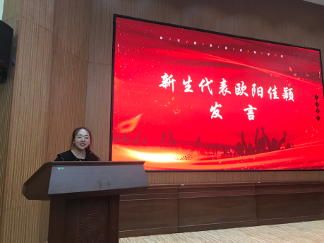 典礼有来自老生代表代瑶同学和新生代表欧阳佳颖同学的精彩发言,学姐从学习生活等各方面悉心的给学弟学妹们提建议,而学妹在演讲中也体现着对大学美好生活的无限向往,总之文学院的明天由每一文学院学子共同铸成。