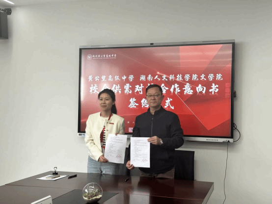 (图2 文学院尹钟宏书记与黄公望高级中学签订就业合作协议书)