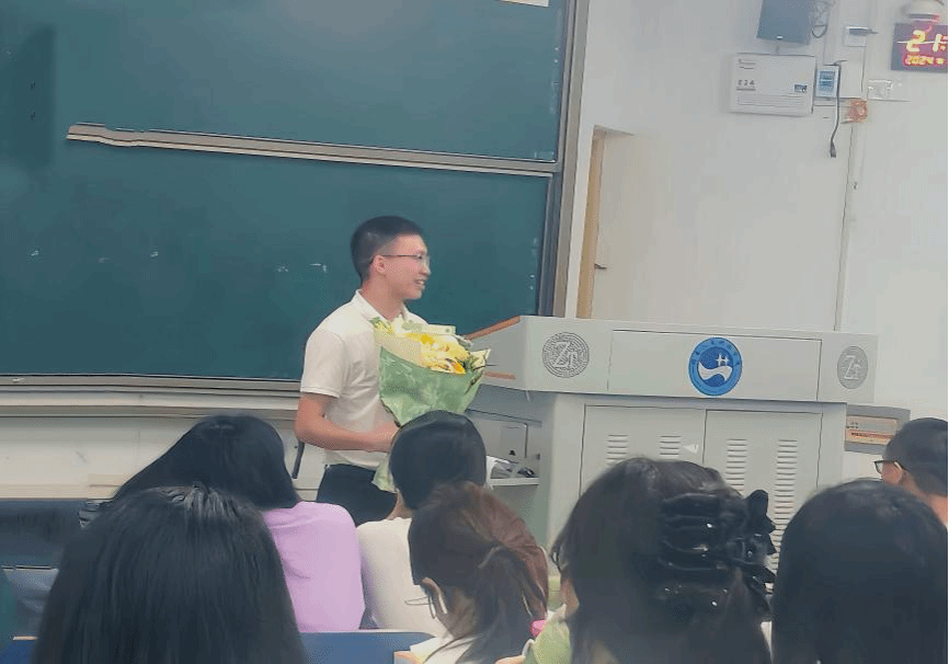 张峰老师对讲座做最后总结发言。“与有肝胆人共事,从无字句处读书”,张老师激情洋溢地引用了周恩来总理的名言,他解释说,“从无字句处读书”,不仅仅是指在书本上学习,更是指在生活的点滴中寻找智慧,从每一次的失败和挫折中汲取经验,从每一个微小的细节中感悟人生。他鼓励学生们与袁学长共勉,保持一颗积极向上的心,去体验那些无以言表的深刻道理。