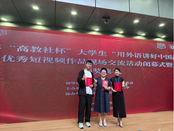 9月29日,2024年“高教社杯”大学生“用外语讲好中国故事”优秀短视频作品现场交流活动闭幕式隆重举行。文学院学生朱嘉鸿作为小组成员参赛的短视频作品《向山而行》在全国919所高等院校的5053件短视频作品中脱颖而出,荣获全国特等奖。