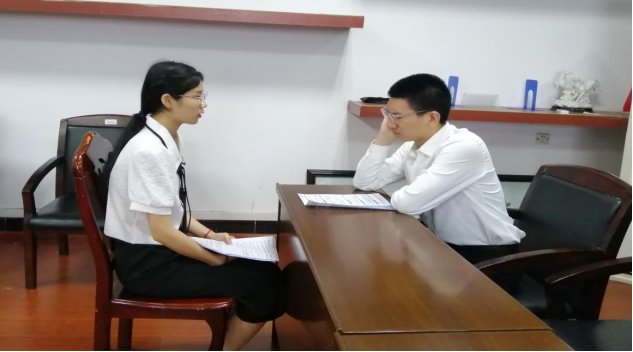 紧接着,面试环节正式开始。所有应聘者分为两组,分别由吴兴湘和李思本一一面试。面试官主要从在校学习情况、办公软件的熟练程度、课外工作经历、对加班的接受程度等方面进行提问和交流。直到晚上八点半,面试圆满结束。吴兴湘先生对我院秘书学专业学生面试中的表现非常满意,表示三一重工将会为我院实习生提供最好的专业实践平台,获取企业发展和学校人才培养的双赢。