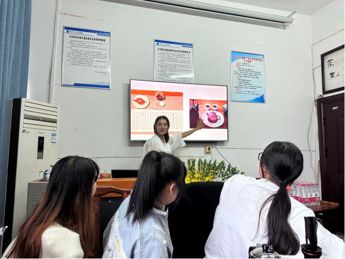 2023年5月22日,秘书学专业校企合作茶艺培训在若谷楼茶艺室进行,秘书学专业陈茜茜老师为21、22级学生进行培训。