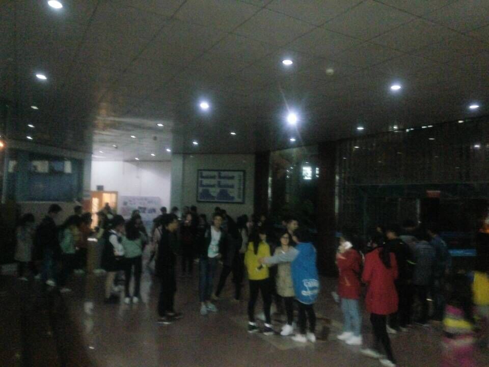 各个社团的负责人在等候同学们入场