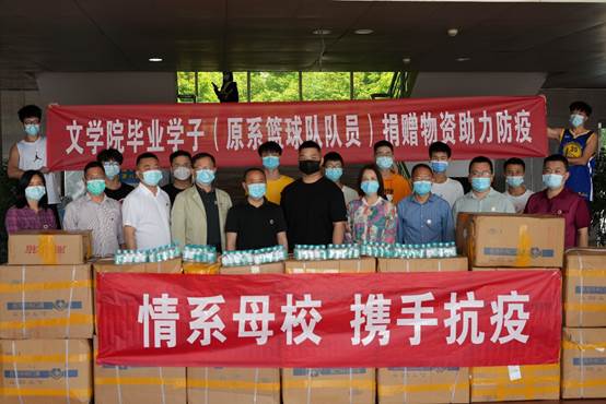 在全国上下齐心协力抗击新冠肺炎疫情之际,学校的疫情防控形势也牵动了校友们的心。411日上午,文学院校友捐赠的三批总价值5万元左右的抗疫物资送抵beat365中文官方网站,校友们用拳拳真心表达着对母校的牵挂和支持。党委委员、副校长、学校疫情防控工作领导小组常务副组长刘铁峰代表学校接收捐赠,校友代表刘毅、学校党政办主任易俊、校友办主任刘莉、文学院党政班子成员及师生代表参加捐赠仪式。