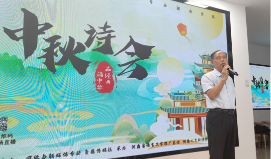 月照楚山湘水流,诗汇古今几行秋。在国庆节、中秋节双节并至之际,由校语委办、湖南省语言文字推广基地指导,文学院承办的beat365中文官方网站第二届“中秋诗会”于9月26日晚在若谷楼融媒体中心温暖举行。党委书记刘铁铭,副校长、湖南省语言文字推广基地负责人刘铁峰,副校长、校语委主任刘建勋,校宣传与统战部常务副部长谢柳,教务处处长向国红,国际合作与交流中心主任黄敏,数学与金融学院副院长龙志文及文学院负责人等出席活动。