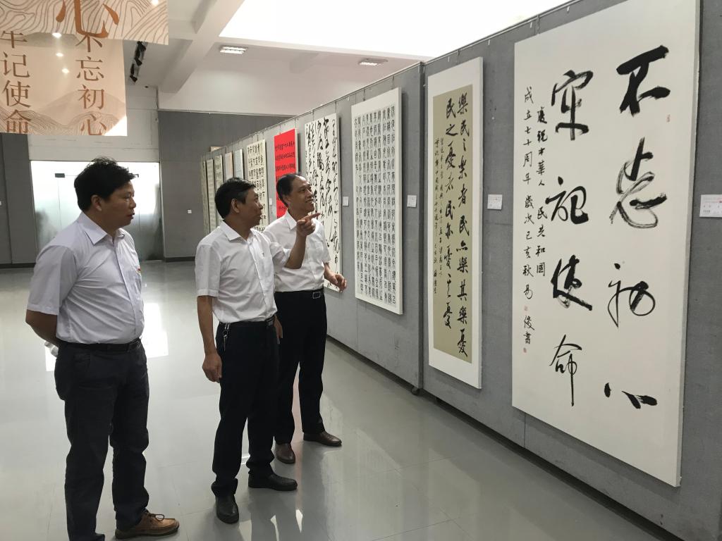 9月27日上午,beat365“不忘初心、牢记使命、砥砺奋进”庆祝中华人民共和国成立70周年书画展在美术与设计学院二楼展厅开展。校领导郭军、刘和云、刘铁铭、蒋建初、周发明、陈志国、刘铁峰、谢柳等一同参观展览。