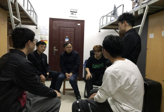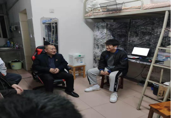 党委委员、副校长陈志国在法学院寝室与学生交谈