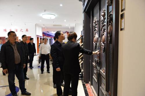 在双峰县副县长李双红、双峰县经开区主要领导、桑圆门业总经理朱柳清的陪同下,刘铁铭一行参观了桑圆门业智能防盗门、全屋定制家居产品生产车间,并仔细询问了公司产品设计、生产,销售、现代化管理、智能制造等方面的详细情况。